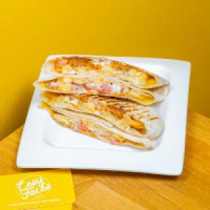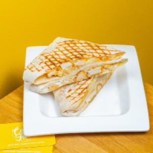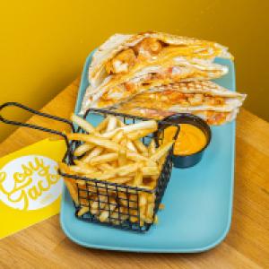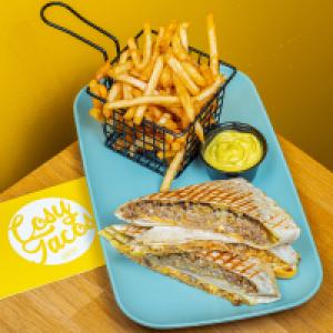 Tender, poulet grillé, emmental, tomates, sauce brésil, servi avec les frites à part