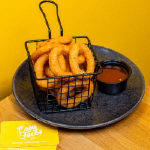 Falafels, oignons rings, maïs, légumes grillés, sauce andalouse, servi avec les frites à part