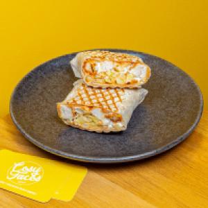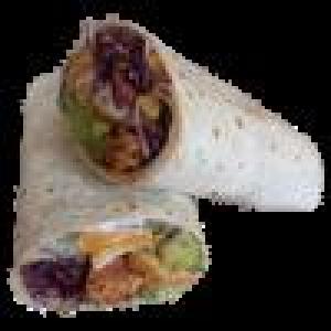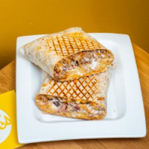 Poulet grillé, veggie épeautre et fromage provolone, cheddar, oignons rouges, frites, sauce barbecue et algérienne