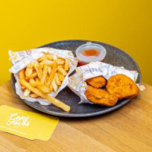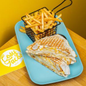 Tender, poulet grillé, emmental, tomates, sauce brésil, servi avec les frites à part