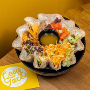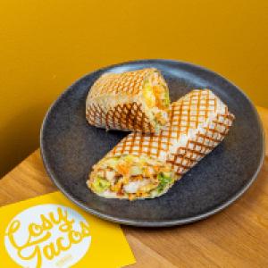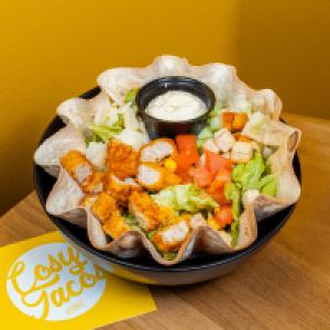 Tender de poulet, concombres, boursin, méli-mélo de crudités, salade, fromage blanc et sauce brésil.