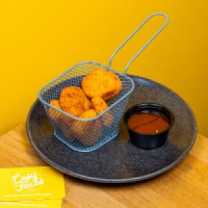 Sauce barbecue, poulet d'odko, oignons frits, frites & sauce fromagère maison